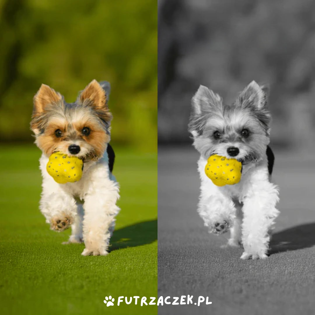 🐾 Specjalny kolor piłki przyciąga uwagę psa i sprawia, że jest ona łatwa do zauważenia w każdym otoczeniu.